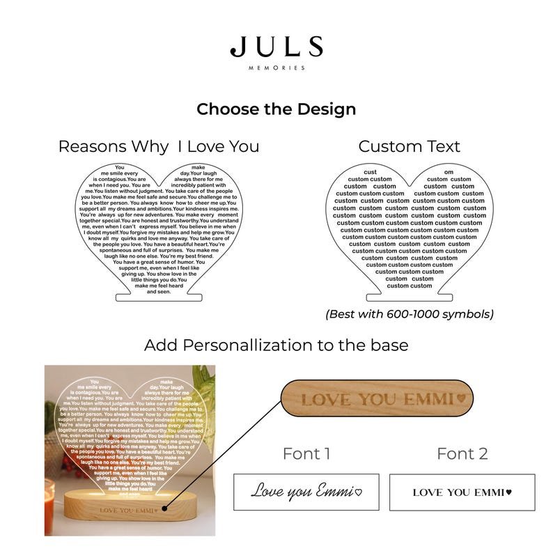 Give the gift of illumination and love with a custom heart night light that is perfect for Christmas, a special 30th birthday celebration, a romantic gesture, or a sentimental anniversary. This personalized night light will light up her space and heart with its warm glow, symbolizing the depth of your affection and creating a charming ambiance that speaks volumes of your love for her. Let this heart-shaped night light be a token of your eternal love and appreciation for her.